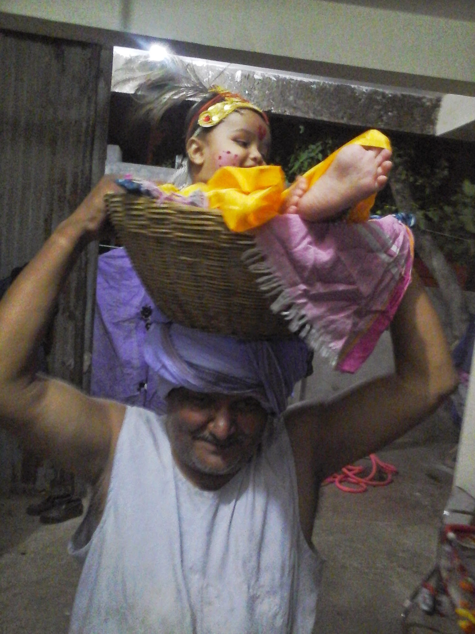 Now u all must me knowing about Lord Krishna’s birth. He was to be killed and so for his safety, Father Vasudev in a stormy and rainy weather took him to the village of Gokul
